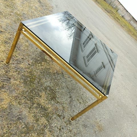 På grunn av plassmangel selger vi et flott sidebord i eksklusiv kvalitet importert fra Horschow som er en eksklusiv nettbutikk i USA. Bordet fremstår som nytt uten synlige feiler eller mangler. Det er solid bygget med en flott stenplate og gullben i soolid materiale.