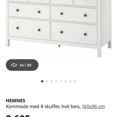Selger en pent brukt Hemnes kommode fra IKEA. Den har stått på barnerommet og er derfor svært lite brukt.