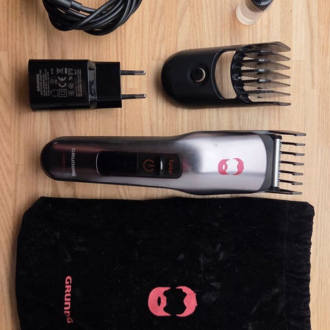 Philips Series 5000 hårtrimmer i blå og svart farge. Inkluderer lader. Designet for trimming av hår med justerbare innstillinger.