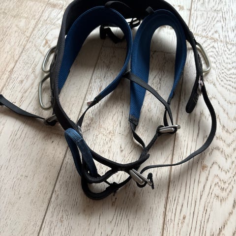 Ubrukt Black Diamond Momentum Women's sele i størrelse XS (61-69 cm), farge Stone Blue. Med merkelapp på. Sele laget for kvinner med justerbare benløkker og flere utstyrsløkker. Materialer og design tilpasset for klatring og sikring.