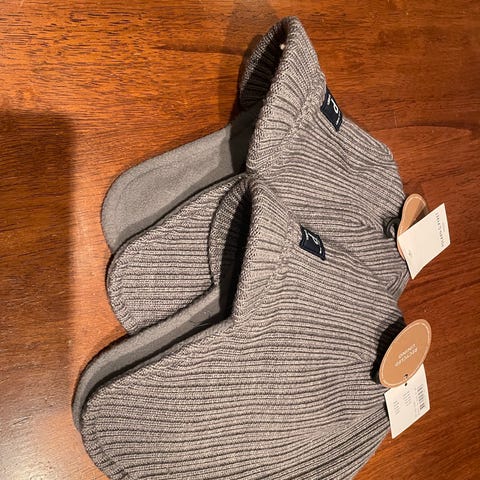 Polarn O. Pyret lue i størrelse 44 for barn, unisex. Laget av merinoull i svart farge. Innvendig er det fleec. Luens materiale gir varme og komfort, egnet for kjølige værforhold. Pent brukt. Refleks i luen.