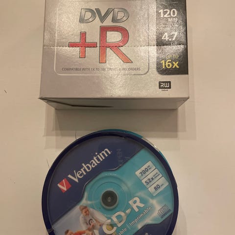 Verbatim og Sony DVD+R og CD-R optiske plater
