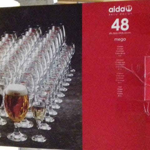 Selger 42 stk diverse glass – ølkrus, champagne, vin, dessert, whisky, osv
