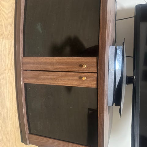 Fin og praktisk skjenk/hylle, snekret av de som eide leiligheten før meg. Malt i fargen Blek Sand for å matche veggen. Ikke malt på baksiden. Trenger et nytt strøk pga bruksmerker, gis derfor bort gratis.
