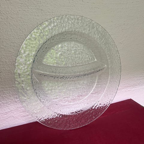 Dekorativt handlaga glassfat, ubrukt. Jordbærutforming.