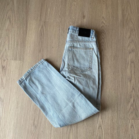 Vide jeans fra Grunt i en mellomblå nyanse. Femlommersmodell med en videre passform. Midjen er justerbar og lukkes med knapp og glidelås. Denne jeansmodellen er den absolutt mest trendy akkurat nå. Match den gjerne sammen med en stor hettegenser.