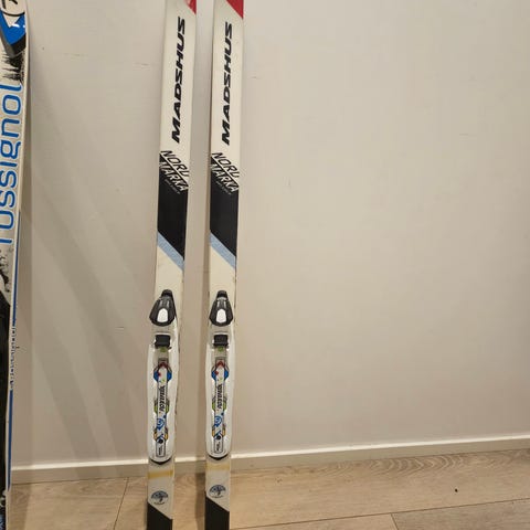 Madshus smøreski (140 cm) med staver 110 cm selges. Skiene kan hentes enten på Kolbotn eller på Haglebu etter avtale