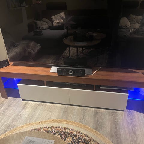 Hel og pen tv-benk. God plass til oppbevaring.