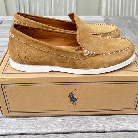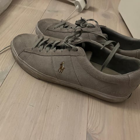 Ralph Lauren Sneakers i størrelse 45. Skoene er hvite med detaljer i svart bak. Materialet er hovedsakelig skinn,