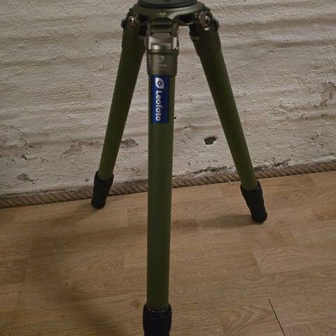 Pent og lite brukt kjempe tripod. Leofoto LM-324CL. Det følger også med en Leofoto LS-75S leveling base, som enkelt kan byttes med en flat base plate.
