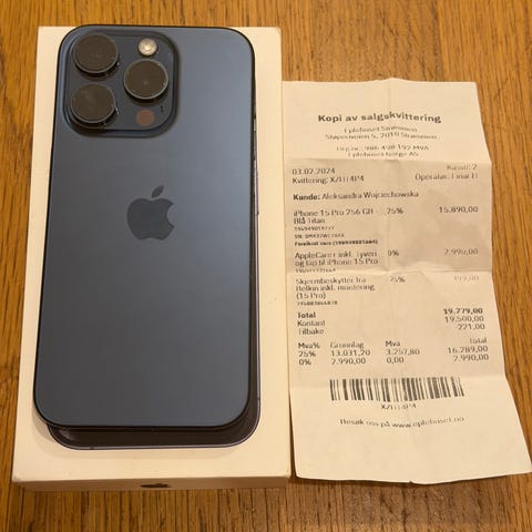 Original eske er dessverre borte, så telefonen selges uten eske, men er nullstilt og klar for ny eier.