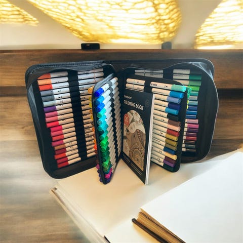 Selger et stort sett med Letraset Promarker og Pantone tusjer, perfekt for illustrasjon, grafisk design, arkitektur og skisser. Settet inneholder både Promarkers og Pantone-farger, noe som gjør det ekstra nyttig for profesjonelt og kreativt arbeid.