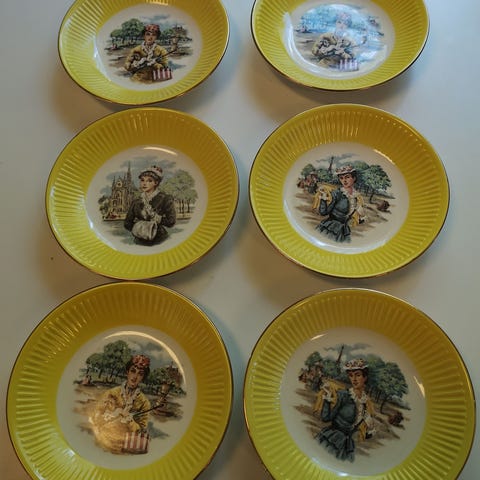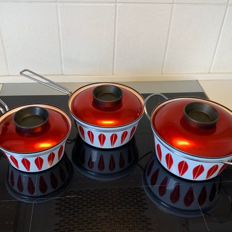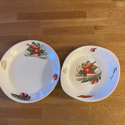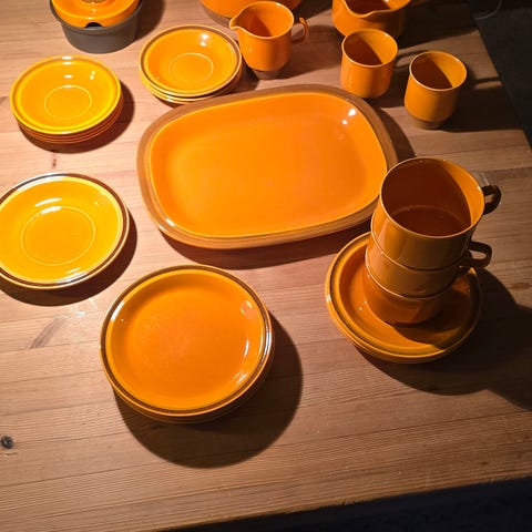 Egersund oransje. Frokosttallerkner og 2 tefat