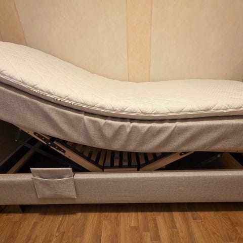 Wonderland VIP kontinentalseng 180*200 cm, I en lys grå farge selges med tilhørende hodegavl og benk til oppbevaring. Kjøpt på Bolia i 2017.
