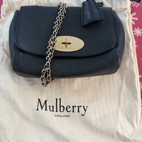 Mulberry veske laget av lær, designet for dame. Vesken har en strukturert overflate som ligner krokodilleskinn og en lås i metall på fronten. Leveres med original eske og beskyttelsespose.