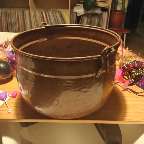 Kobber vedkurv rund med håndtak