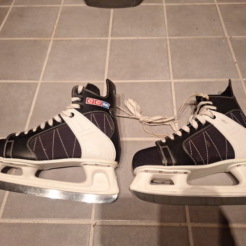 Sofa ishockeyskøyter i størrelse 43. Skøytene er svarte og designet for ishockeybruk.