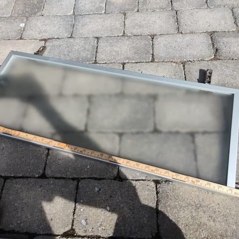 2 kjøkkenskap med glassdører fra IKEA gis bort b x h x d 40 x 92,5 x 35 cm. 2 glasshyller i hvert skap. Har hvert skrudd sammen, men løse nå. Sidepanel i eik er på en side av skapene.