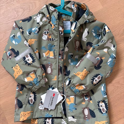Meget pen blå Polarn O.Pyret regnjakke str 110.