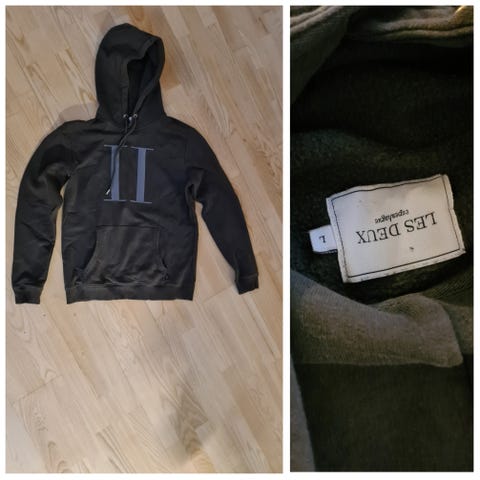 Klesplakke med 3 stk hettegensere i størrelse S selges. Svart og burgunder genser fra Les Deux og den beige er fra Jack & Jones.