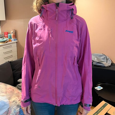 Blå kjempefin, lufting under armer med glidelås, stramming nede.Kjøpt for liten. Brukt max 2-4 ganger.