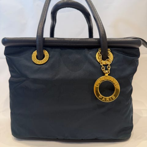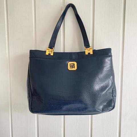 Klassisk stilig mørkeblå håndveske / skulderveske med gulldetaljer