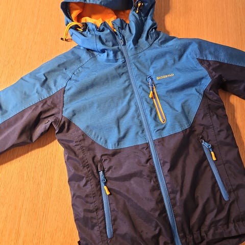 Varm, blå fleecejakke mrk Skogstad. Med hette, str 7 år (122-128). Ikke synlig brukt.