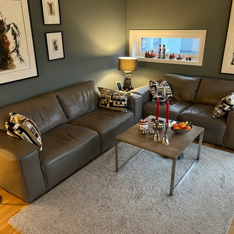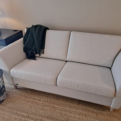 Brunstad 3 og 2 seter sofa, meget pent brukt! Veldig god sofa og sitte i. Det er ingen synlig slitasje på sofaen så den fremstår som veldig god og solid stand.