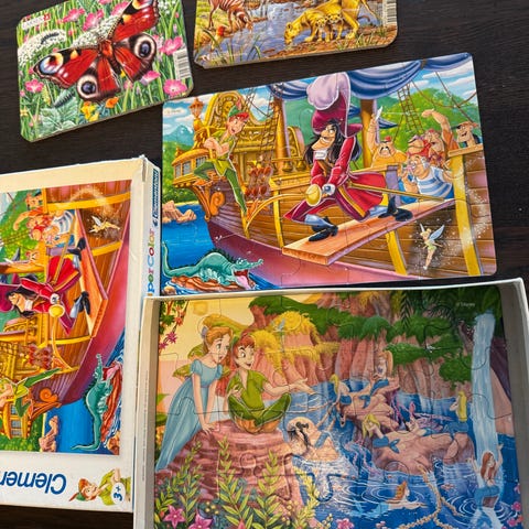 Samling av brettspill og lotto spill fra merkene Clementoni og Trefl. Inkluderer spill som Stavespill, Kjøretøy Lotto, Jeg er bare rosa Lotto, og flere med barnevennlige temaer som Disney og Ravensburger. Spillene er tilpasset barn, med varierende antall brikker og puslespillbiter, og passer til bruk i familie- og barneaktiviteter.