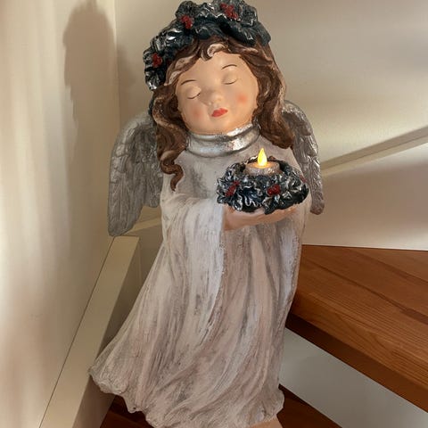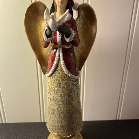 &Tradition Julepynt dekorasjoner i ulike former som måne, stjerne og hjerte med små figurer av engler. Dekorasjonene har hvite rammer og røde opphengsnåler, egnet for julepynt i hjemmet.