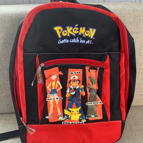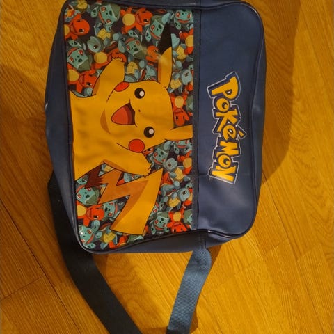 Pokemon Ryggsekk i fin stand, noe bruksemerker men fortsatt veldig fin, glidelås virker bra. Se bilder for detaljer.