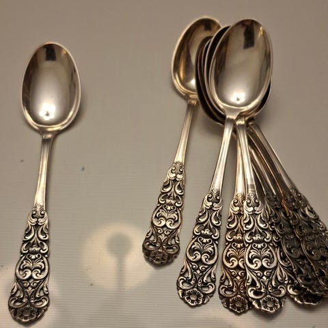 Festbordsølv: Skje/sukkerskje med vriddskaft i «sirkel».