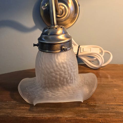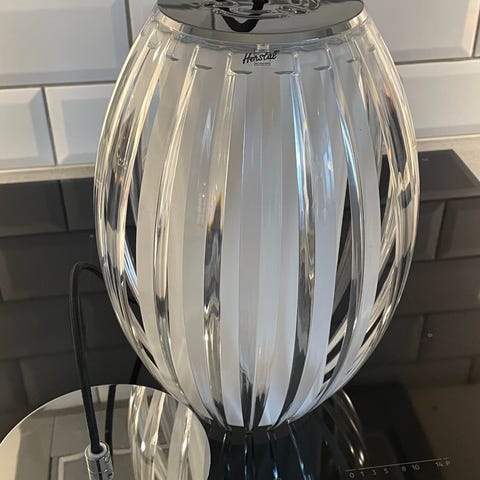 Pen rund taklampe med krystaller selges. Den gir et varmt lys. Ca 40 cm i diameter.