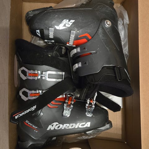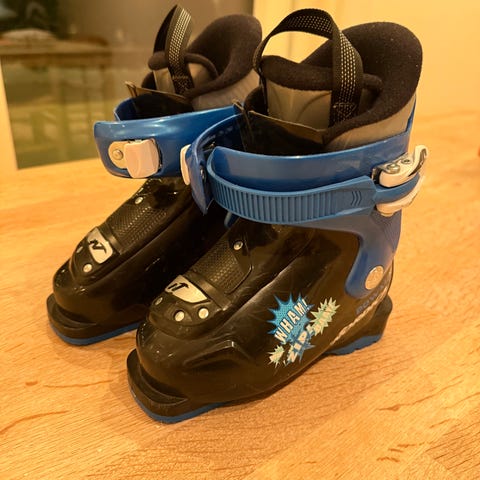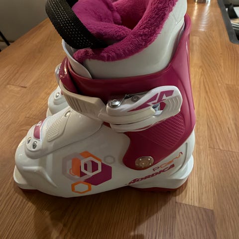 Nordica slalomstøvler til barn 160-175. Tror det tilsvarer skostørrelse rundt 26-28. Skoene er i god stand og fungerer slik de skal, men en del bruksmerker etter bruk.