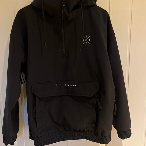Dope snowboardjakke unisex i størrelse XS. Genseren er grønn og har en myk innside med fleece. Den har hette med snøring og kengurulomme foran. Noen bruksmerker nederst på ryggen, men ellers hel og fin.