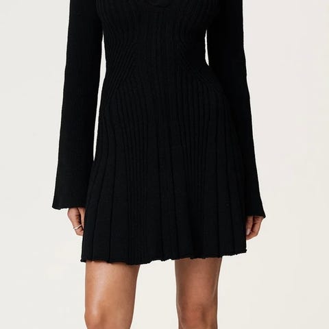 Nydelig hvit strikkeskjole fra Adoore. Rund hals, lange ermer, mini lengde, supermykt stoff. Helt ny, med lapp i sin originale bag. Str XS.