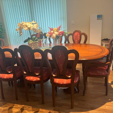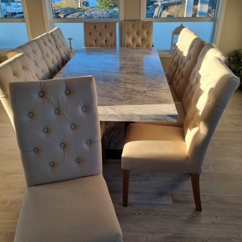 Pent og fint Spisestue til salg , pent brukt men skadet litt på bordet og trenger litt farge, har 8 stk spisetoler … må hentes..