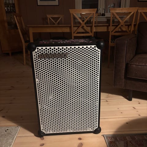 Høyttaleren har klart og tungt lydbilde, mye trykk i bassen og innebygd lysshow som gir god stemning (kan slås av om ønskelig). Enkel å bruke – kobles rett til mobil via Bluetooth. Det er også inngang for mikrofon eller gitar hvis man vil bruke den til taler eller karaoke.