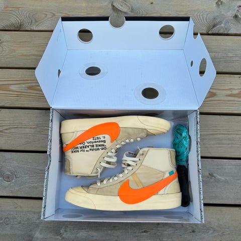 Noen tegn kan sannsynligvis fjernes med en god rengjøring. Venstre skoen er litt slitt på innsiden, som det siste bildet viser