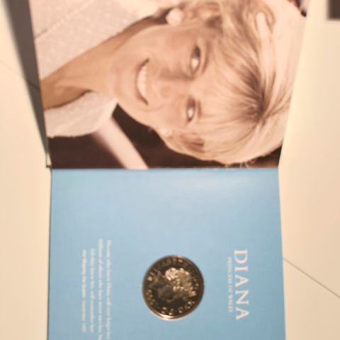 Royal Mint Diana Minnebrev inneholder fem frimerker med bilder av Diana, prinsesse av Wales, samt en minnemynt. Settet er illustrert med tekst og bilder som beskriver prinsessens liv og hendelser. Minnebrevet har dekorative gule roser og er nummerert med serienummer. Produktet er et samlerobjekt relatert til Diana, prinsesse av Wales.