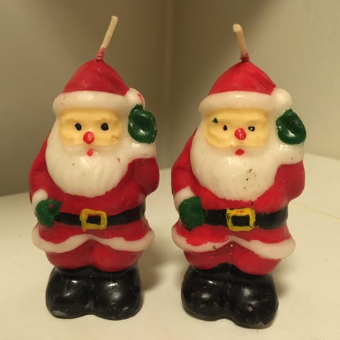 Eldre stearinlys av julenisse. Noe hakk/merker i emaljen, men fortsatt sjarmerende.