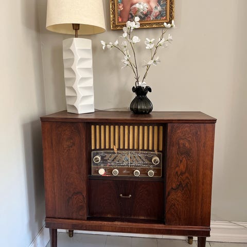 Stereobenk laget av møbelsnekker