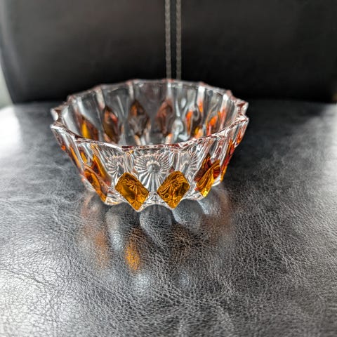 Ett par med vintage lysestaker i klart glass.