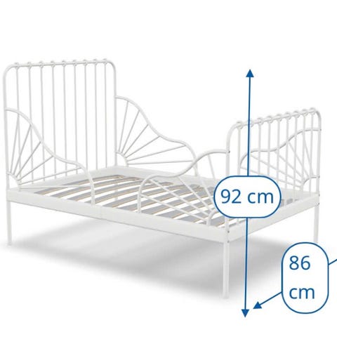 Alt er pent brukt, og har ingen skader eller merker. Slik vi har brukt sengen nå er den 80x170, så laken samt madrassbeskytter som følger med passer denne str. Sengen kan strekkes ut til 80x200, alle delene til madrassen følger med. Madrass kommer i 3 deler (se bilde).