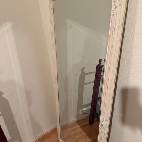 Speil fra rusta med lys som er klistret på, brukt som smikespeil, lysene har usb tilkobling. Ca 65 cm i diameter.