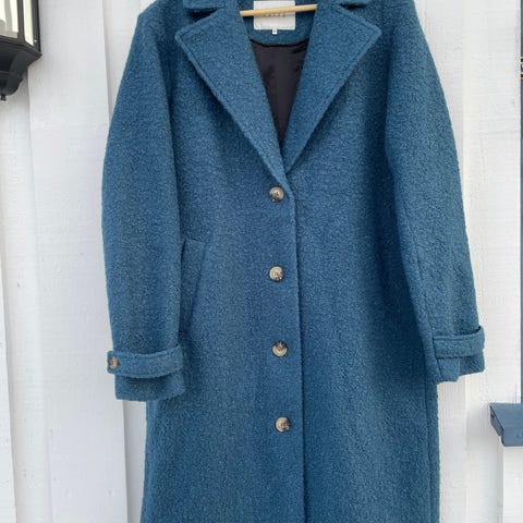 Careless kåpe i blå farge, størrelse XL for kvinner. Laget av polyester materiale. Kåpen har et langt snitt med belte i livet og knappestolpe foran. Ermet har voluminøse detaljer for et unikt uttrykk.