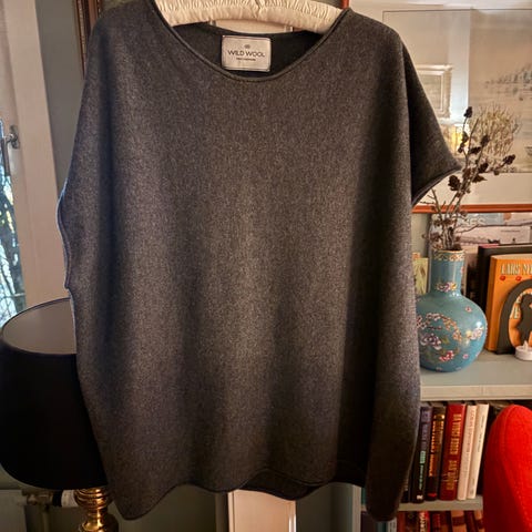 Deilig, svart kjole i 80% ull fra Safa. Str L. Pent og lite brukt. Kan brukes under annen kjole når det er kaldt, eller som en varm nattkjole, f.eks. Mål på forespørsel.