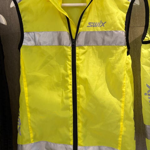 Reflekssele med justerbare stropper i gul farge. Designet for å øke synlighet i mørke omgivelser. Passer for bruk over klær og kan tilpasses ulike kroppsstørrelser.