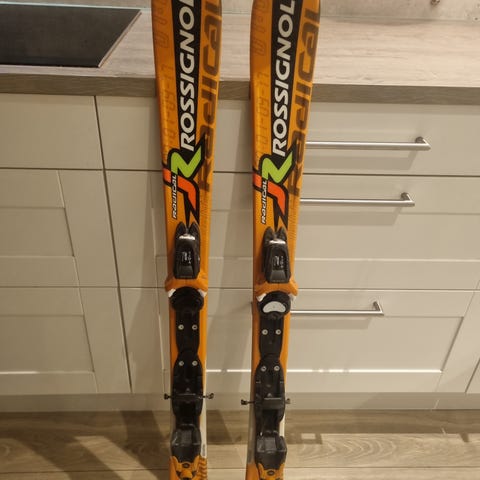 Rossignol Powah slalom ski i 100cm lengde selges med staver i 85cm lengde. Skiene er i god tilstand, men bør glides før bruk.