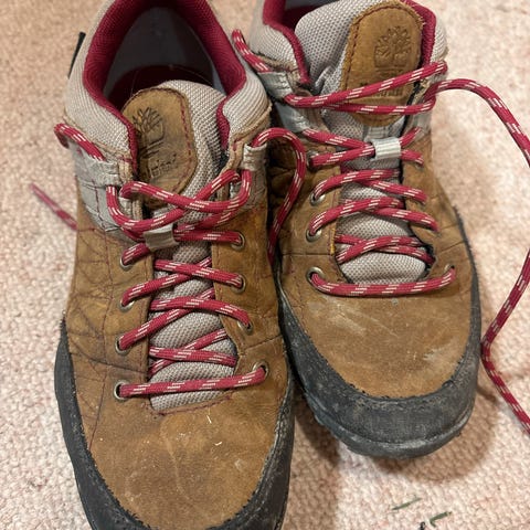 Timberland barnesko for jente i størrelse 34. Skoene har en kombinasjon av materialer i beige og rosa farger. Designet for barn med funksjonelle snøringer og slitesterk såle.